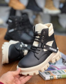 نیم بوت بچهگانه مدل بندی با طراحی زیبا و رنگبندی مشکی کرم و مشکی یکدست، انتخابی عالی برای پاییز و زمستان است. این نیم بوت از چرم صنعتی مرغوب ساخته شده و زیرهی پیو (PU) ضد لغزش دارد تا ایمنی کودک هنگام راه رفتن حفظ شود. بغل زیپدار بودن آن باعث میشود پوشیدن و درآوردن کفش بسیار راحت باشد. مدل بندی قابل تنظیم آن برای اندازهی مختلف ساق پا مناسب است. نیم بوتی بسیار سبک، نرم و بادوام که هم ظاهر شیک دارد و هم راحتی را برای پای کودک به ارمغان میآورد.