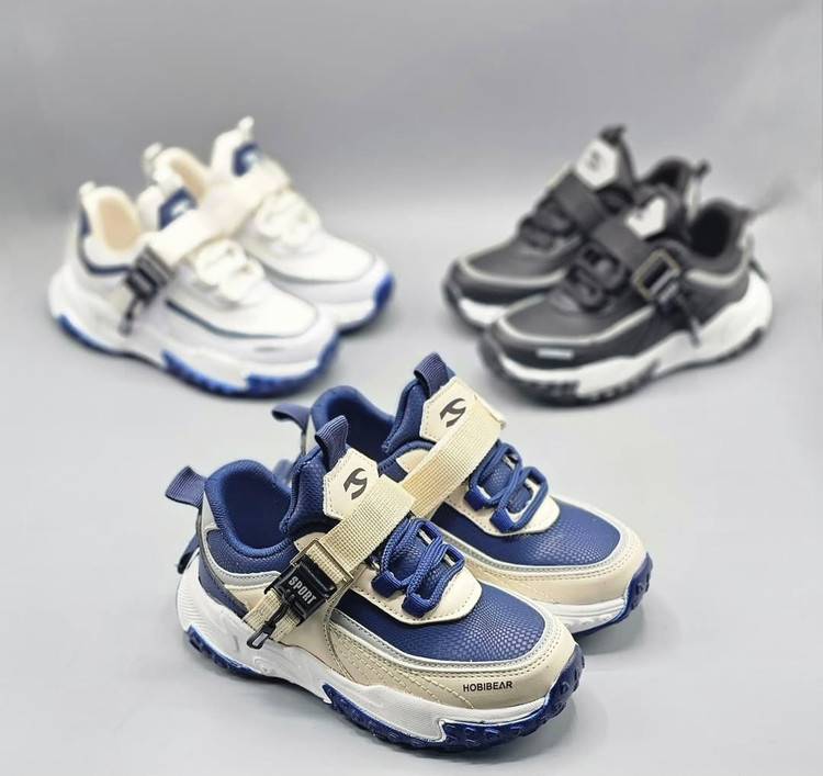 کفش بچهگانه اسپرت هوگبیر HOBIBEAR انتخابی عالی برای مدرسه، ورزش و استفاده روزمره است. این کتانی با طراحی مدرن و ترکیب رنگ جذاب (سفید، مشکی، سرمهای و کرم) ساخته شده و علاوه بر زیبایی، راحتی فوقالعادهای برای پای کودک فراهم میکند.